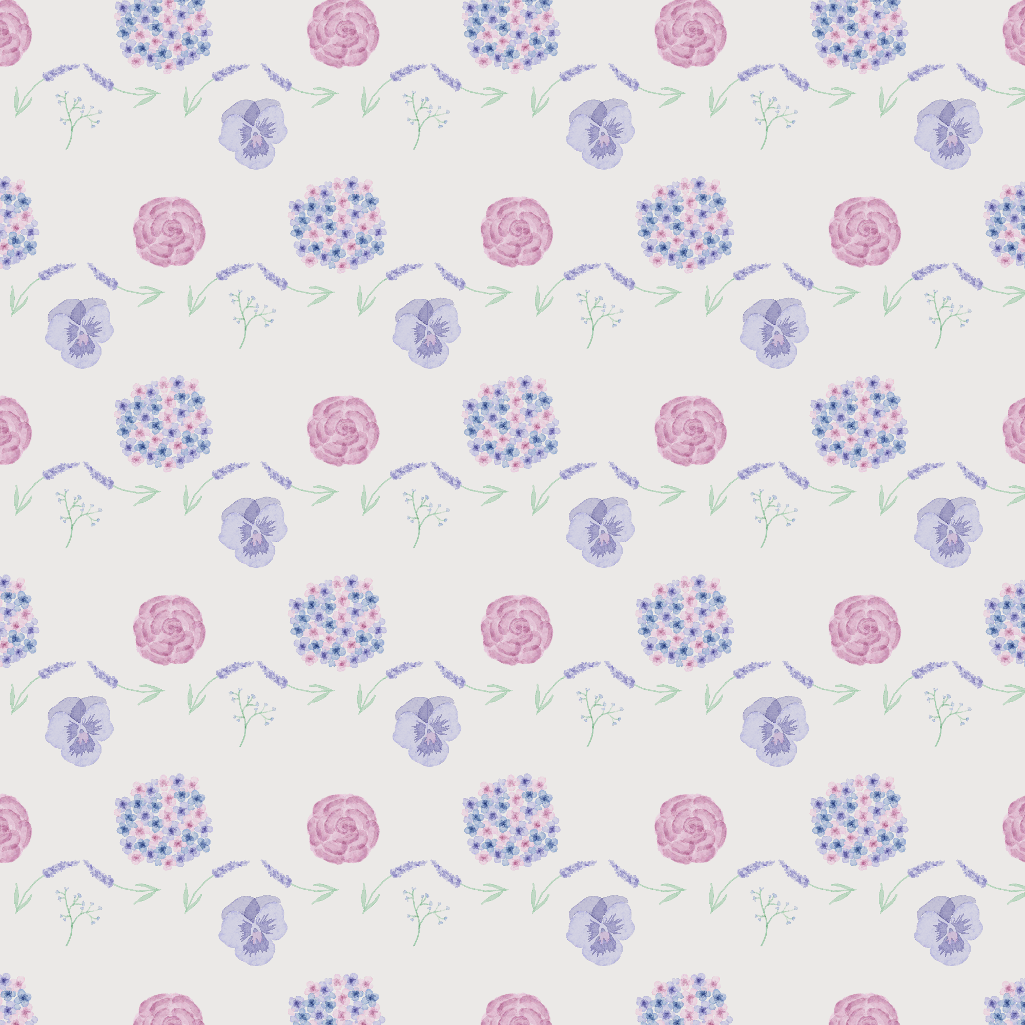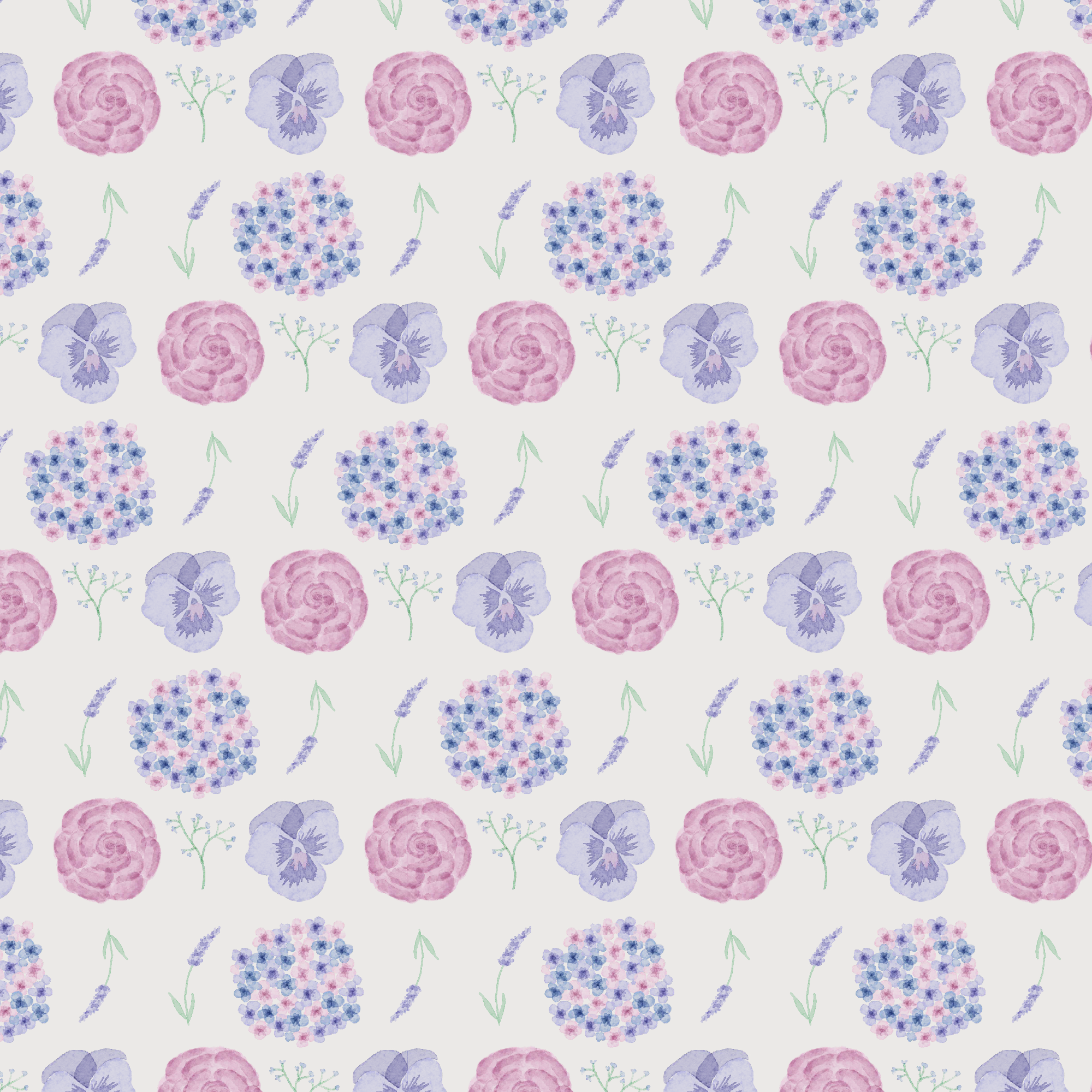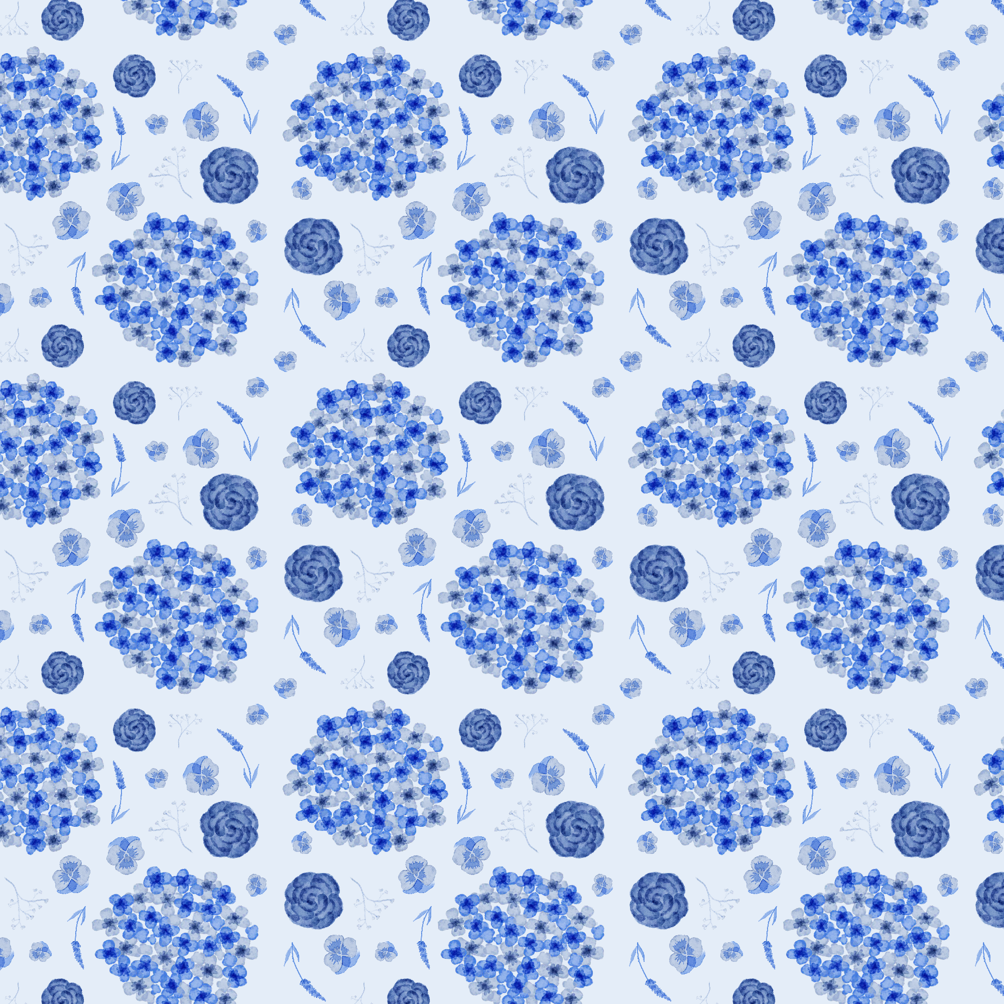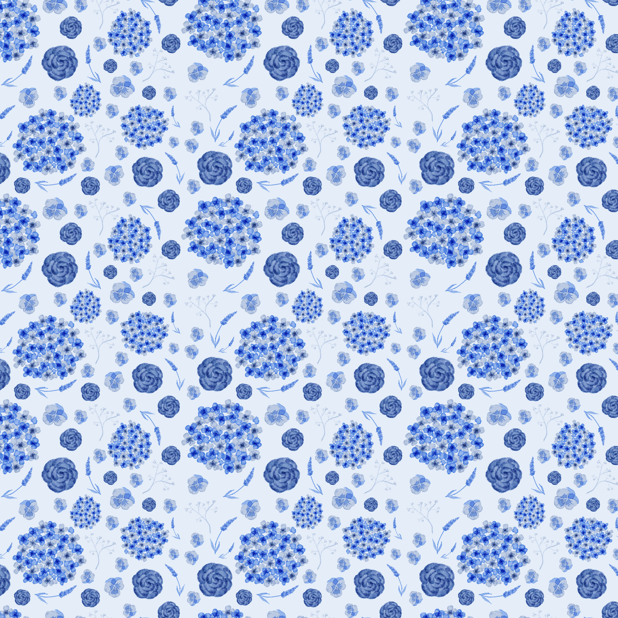 To create “Floral Patterns” I used Adobe Fresco and Adobe Illustrator. I started in Fresco with creating each of the flowers. I started with the blue hydrangea using the wet brush in the pixel brushes. I then made the blue rose, lavender, baby’s breath, and pansy. I made all these flowers blue because I wanted them all to be monochromatic and the blue was to focus on the hydrangeas. I then made all the same flowers but using pink, purple, green, and blue. I chose these colors because they are the colors that the flowers usually are. I made them all pastel because I thought the colors would go well together and I did not want any of the colors to stick out more than the rest.